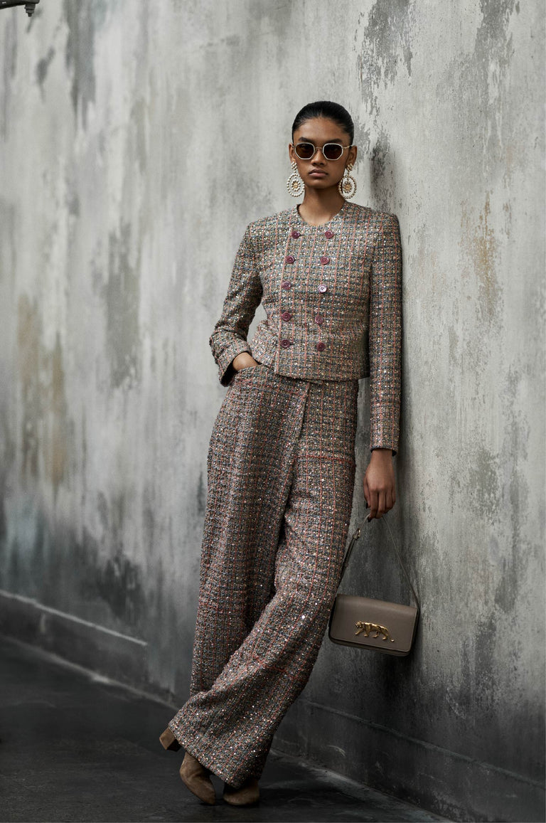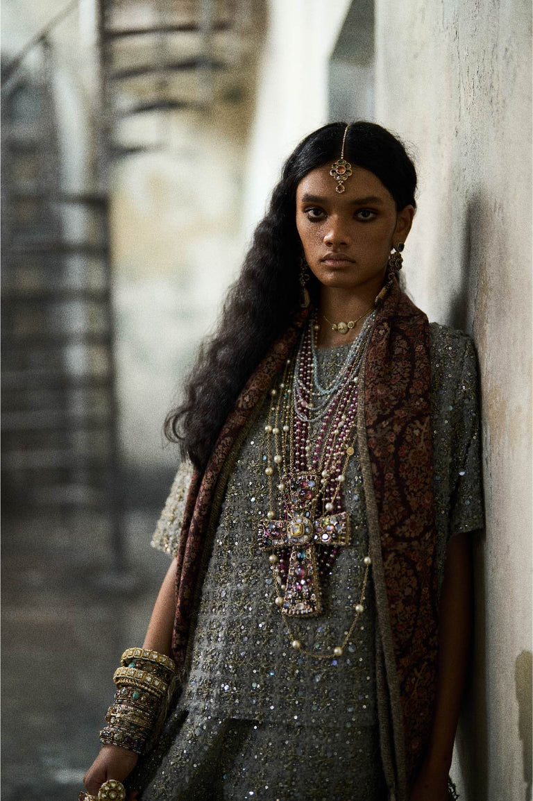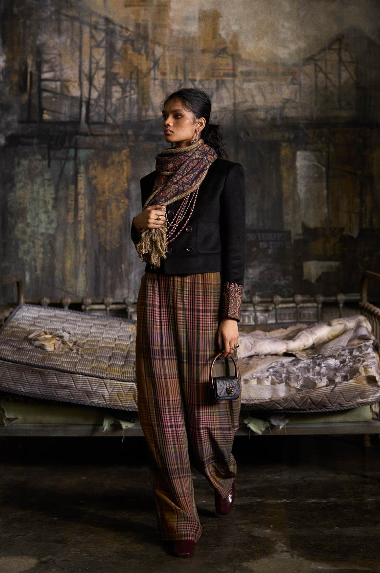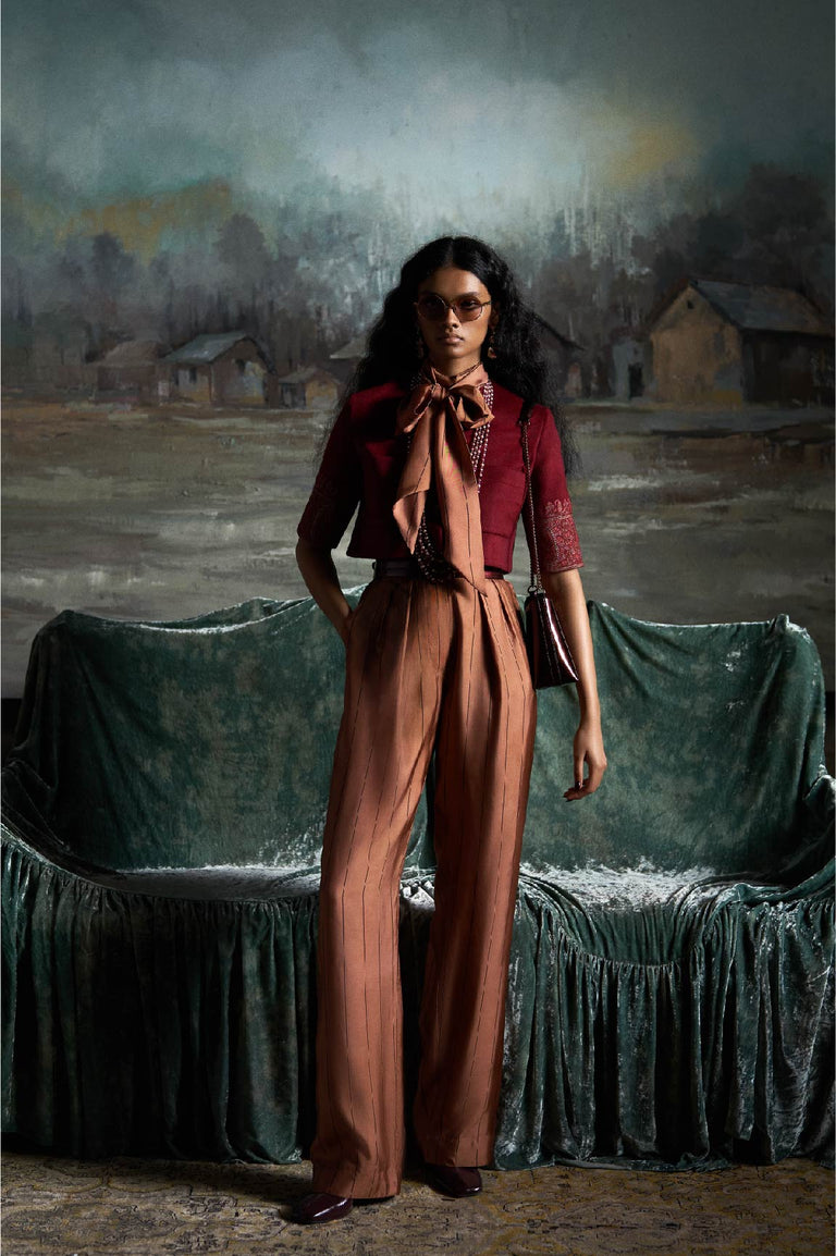 From the bylanes of Benaras and family-run factories in Prato, across the steppes of Mongolia and the high plateau of Peru, through the storied mills of Scotland to the ateliers of West Bengal, the Sabyasachi Autumn/Winter 2024 collection is a celebration of the finest textiles from around the globe. Adhering to the steadfast codes of couture, crafted on the foundations of classical menswear tailoring and interspersed with artisanal embroideries, Sabyasachi re-imagines ready-to-wear. Weaving haute techniques and the finest quality materials with the ease and wearability of contemporary styles, wardrobe staples are transformed into modern heirlooms.