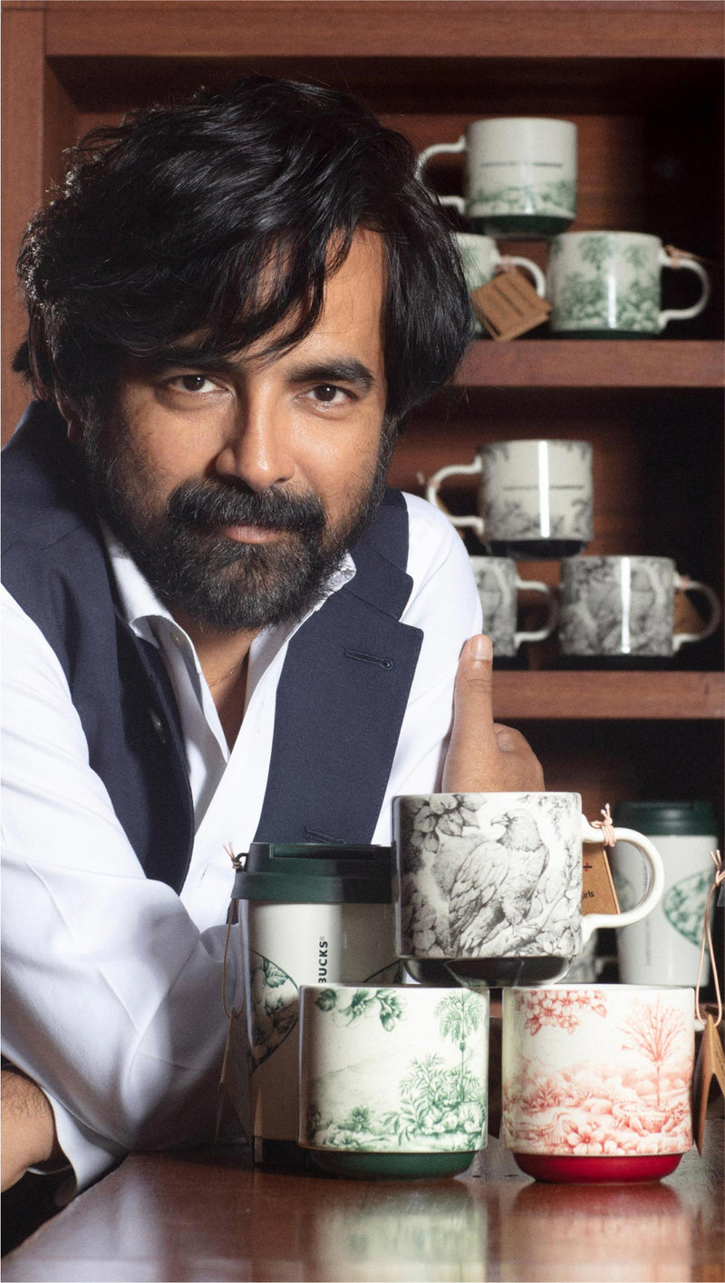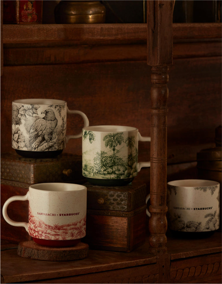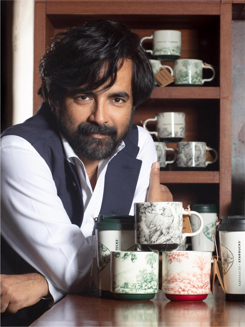 Sabyasachi collaborated with Starbucks on a limited edition collection of lifestyle drinkware that included ceramic mugs and stainless-steel tumblers. Proceeds from sales were donated to support ‘Educate Girls’—a non-profit organization with a focus on working towards improving girls and young women’s education across rural India, providing the support they need to develop their skills and find careers.