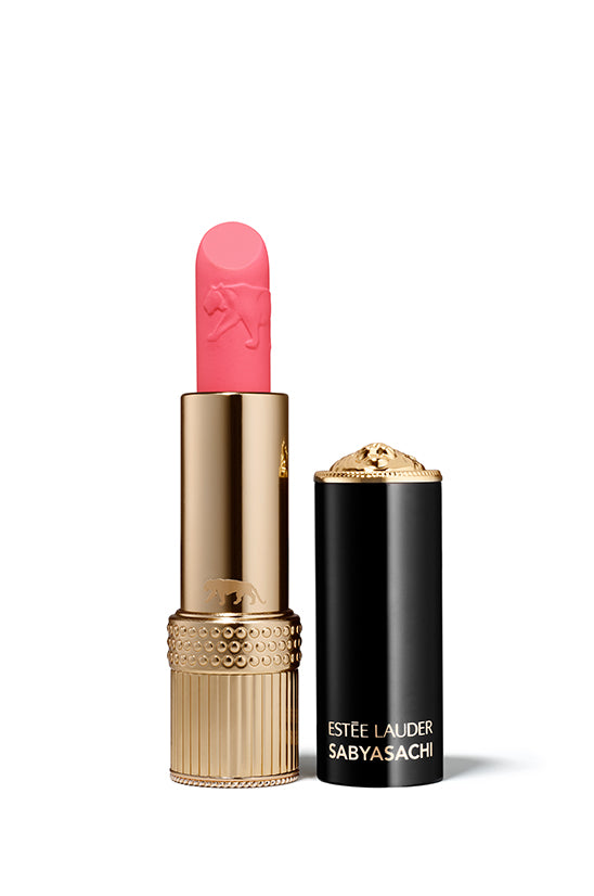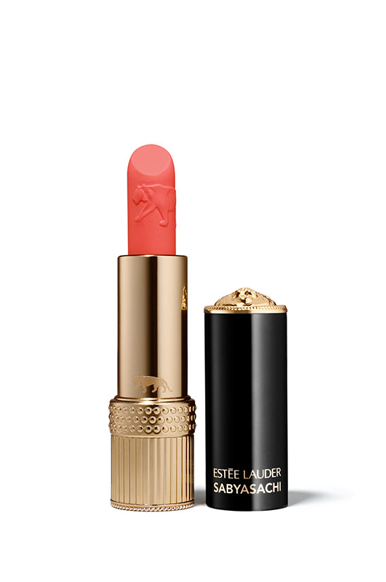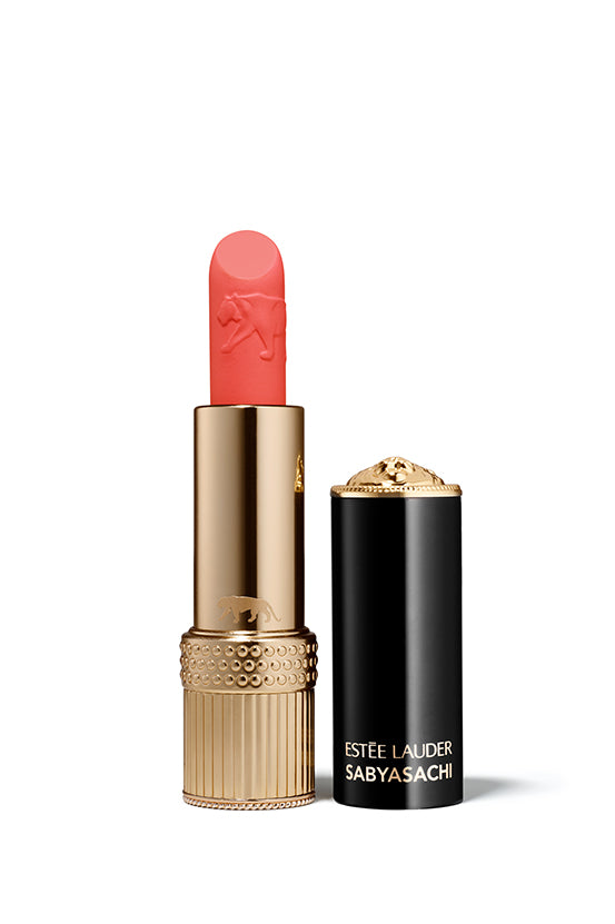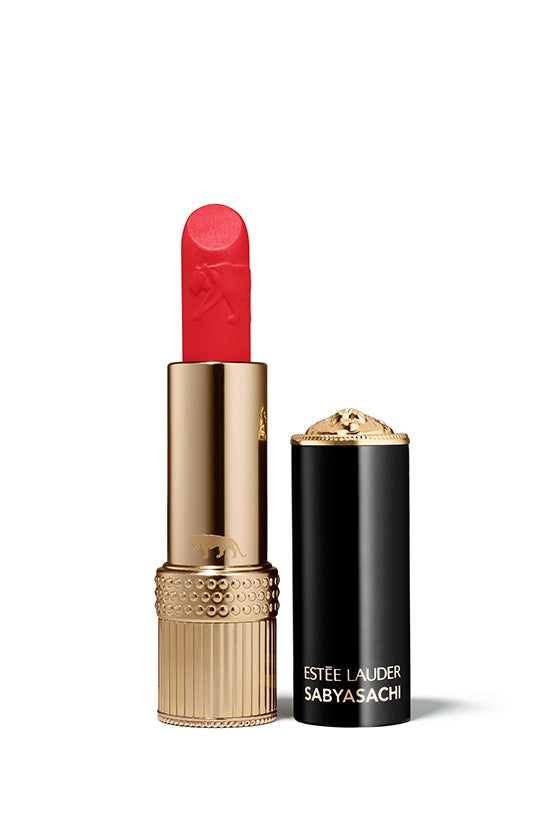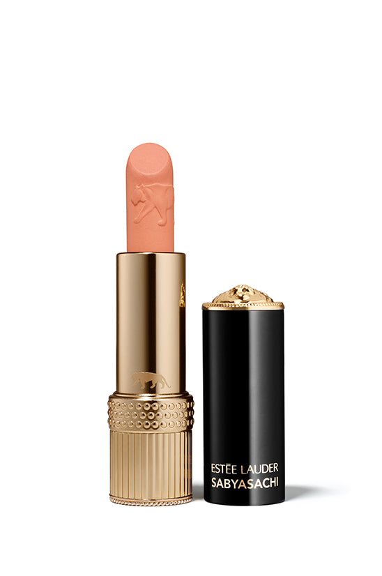 Signature house colours from Sabyasachi are translated into lip shades covering a spectrum of hues true to the hallmarks of the atelier. Tropical fruit and flora. Hand woven textiles. Intense and glamorous gemstones. All with a sensorial experience in Ultra Matte and Satin Matte finishes. Scented with warm, spicy cinnamon notes. Exquisitely crafted, the gilded case is topped with the iconic Sabyasachi Tiger medallion—plated with luxurious 24 Karat gold. A one-of-a-kind collaboration available across the world.