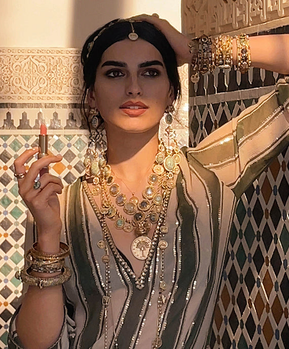 “When I visited the Estée Lauder archives, I saw such beautiful products—almost like objects of art. I related to that as a jeweller and designer. I felt a strange kinship with Mrs. Lauder, her vision was spectacular but essential. I wanted to bring that back and distil it into this collection. This collection celebrates not just the colours but also the cultural exuberance and sensorial joys of India. A true collaboration between New York and Calcutta.”