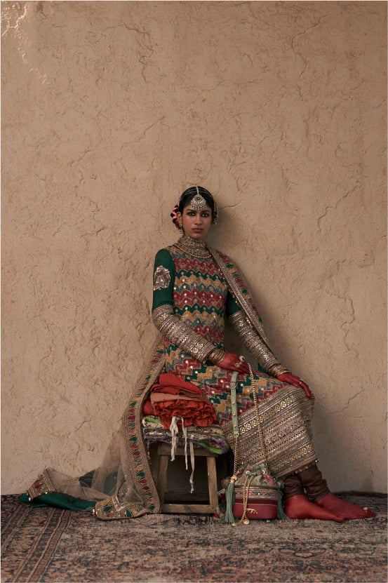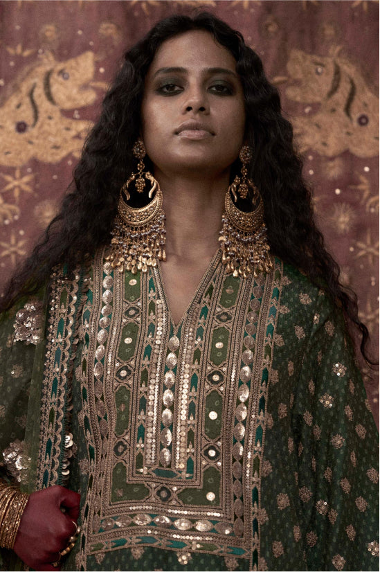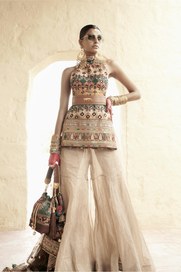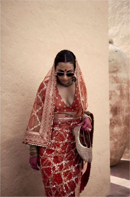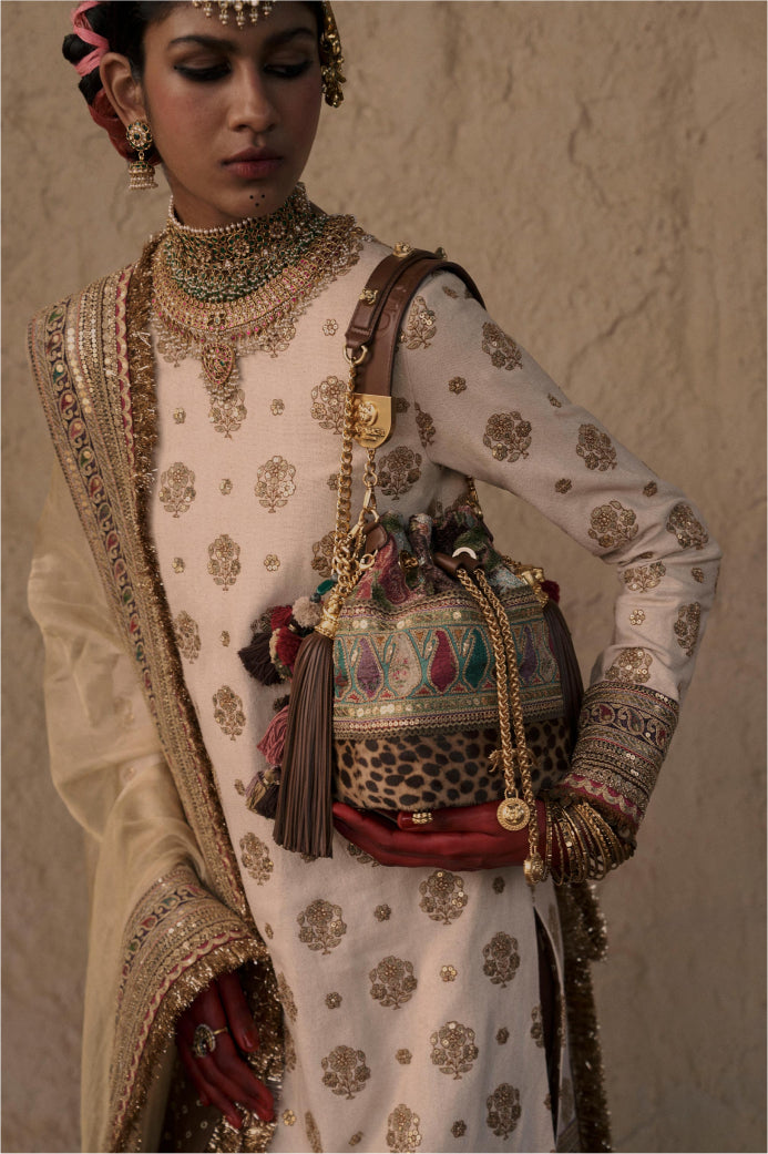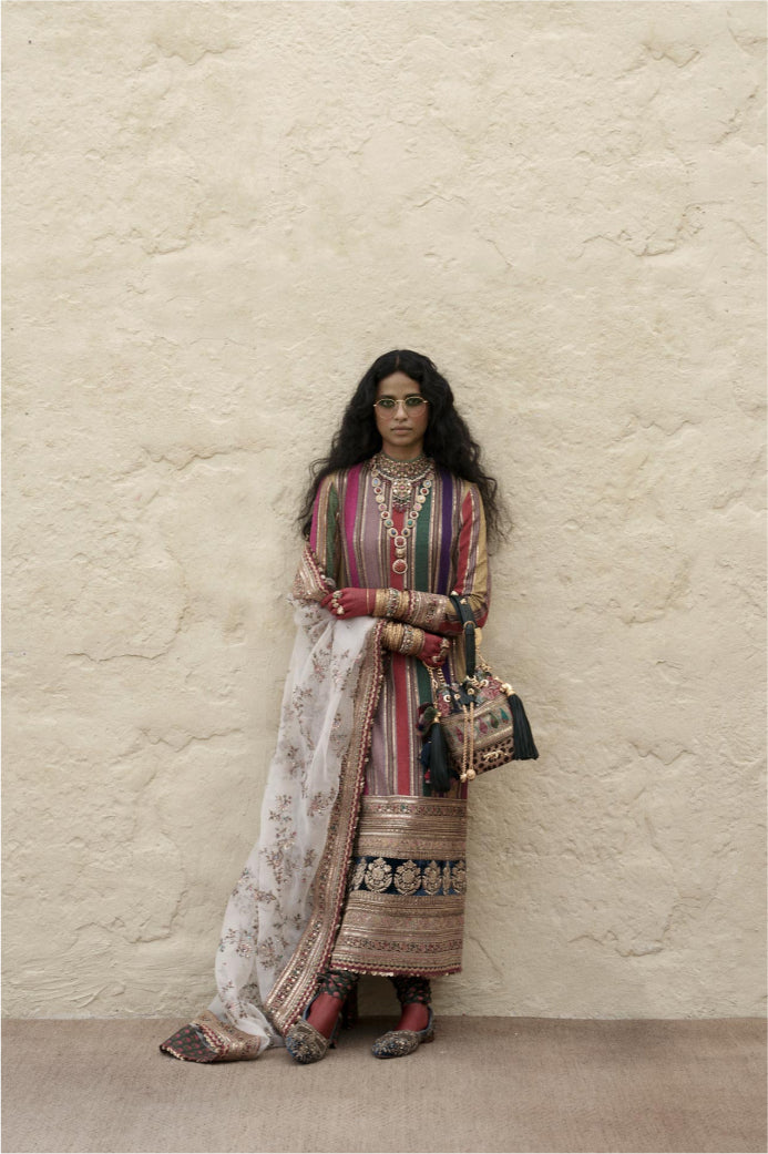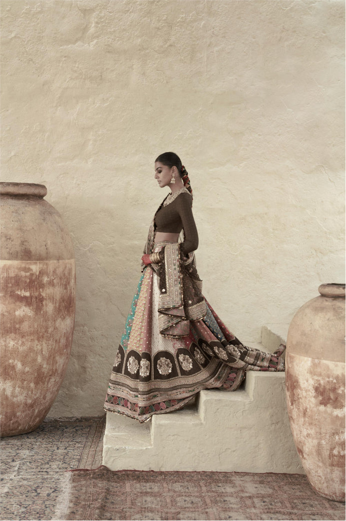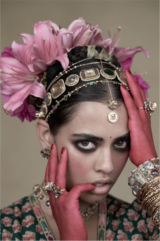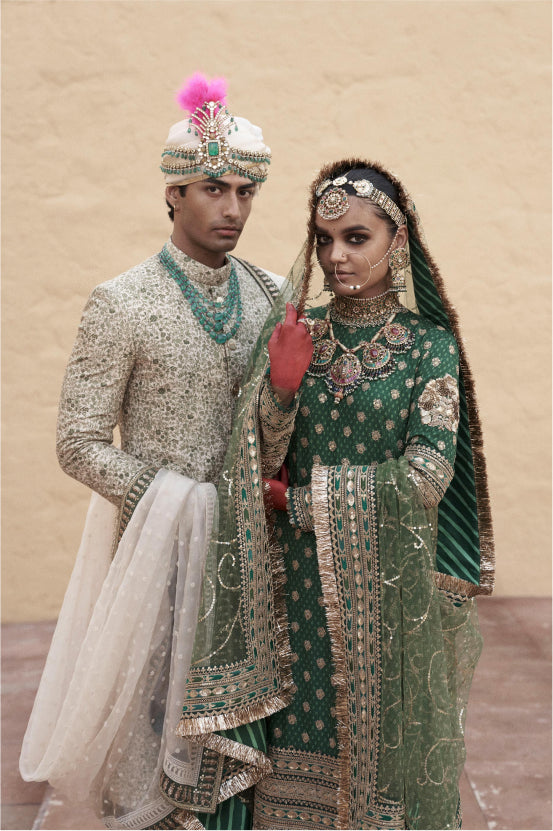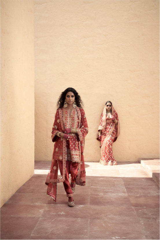 A celebration of classics. Matka silks, organzas, velvets and brocades, hand embroidered with zardozi, tilla work and gota tell a story of authenticity and the finest of Indian craftsmanship. Paired with heritage jewellery that brings back the grand artisanal legacy of India. This is our homage to tradition even as we celebrate the dynamism of today.