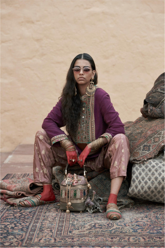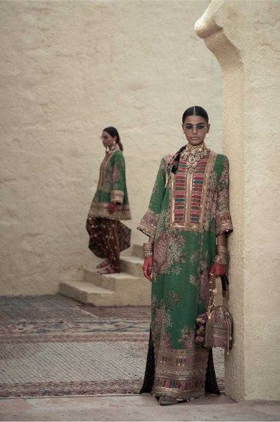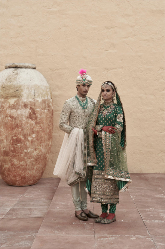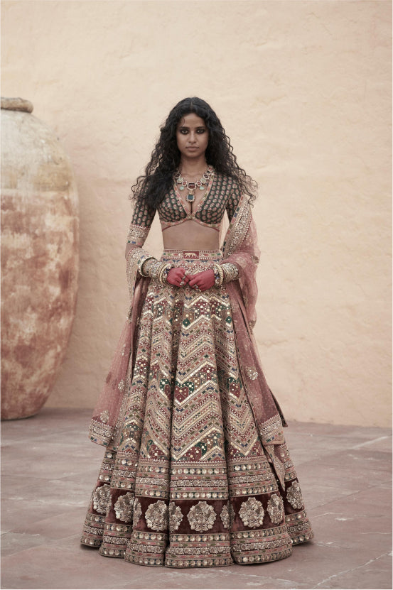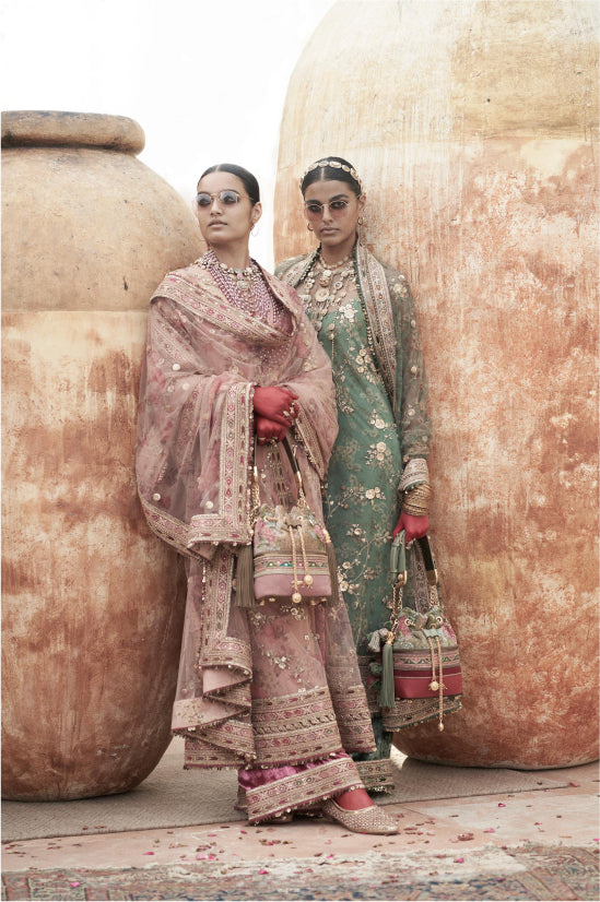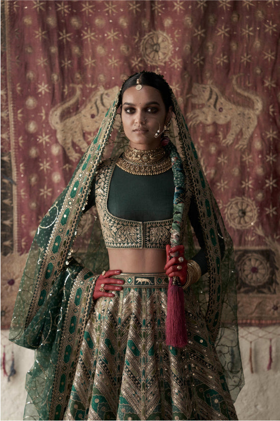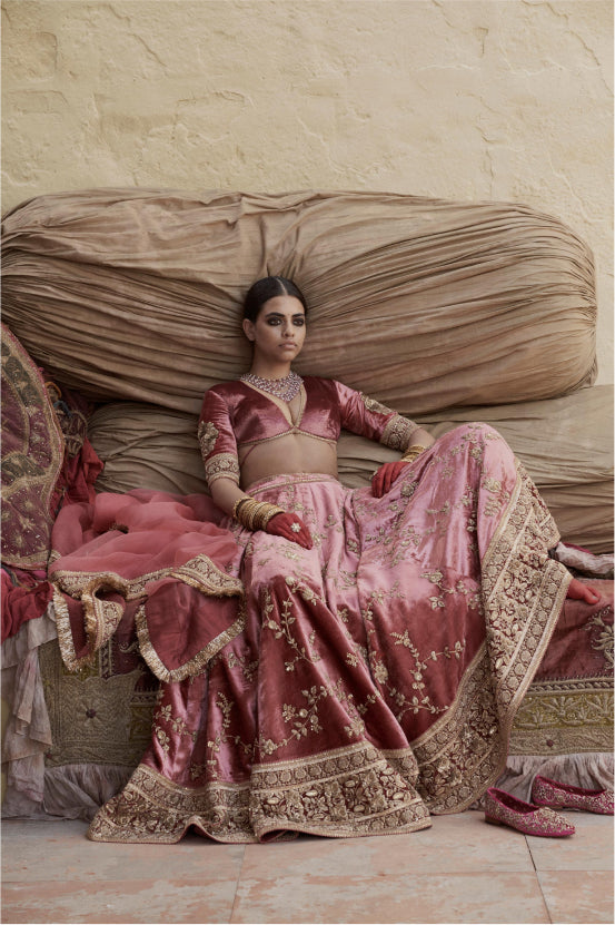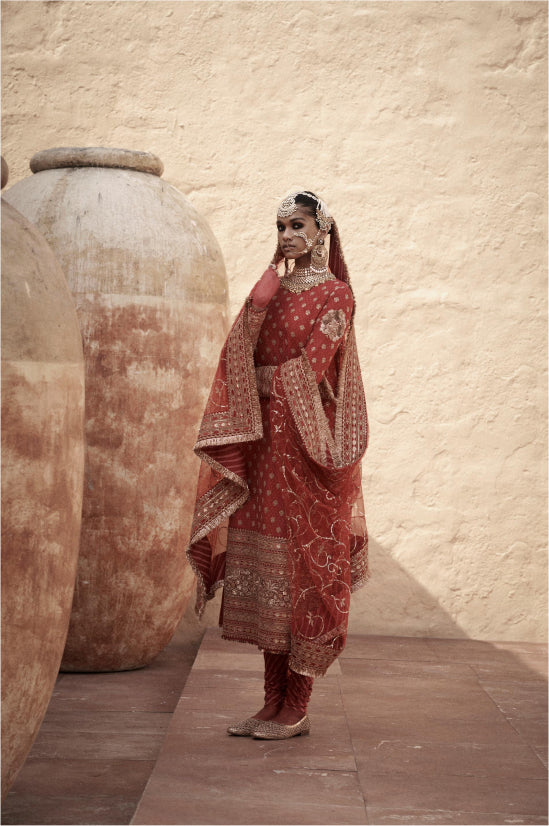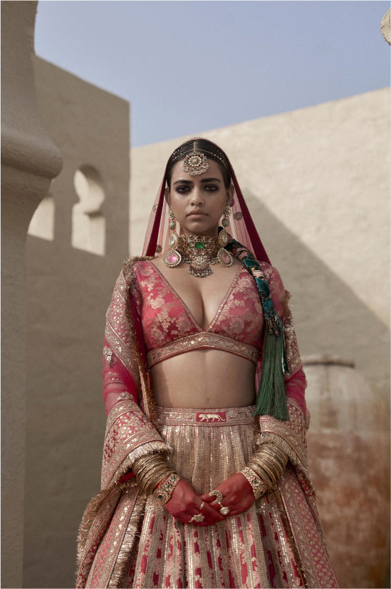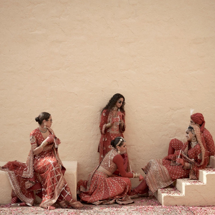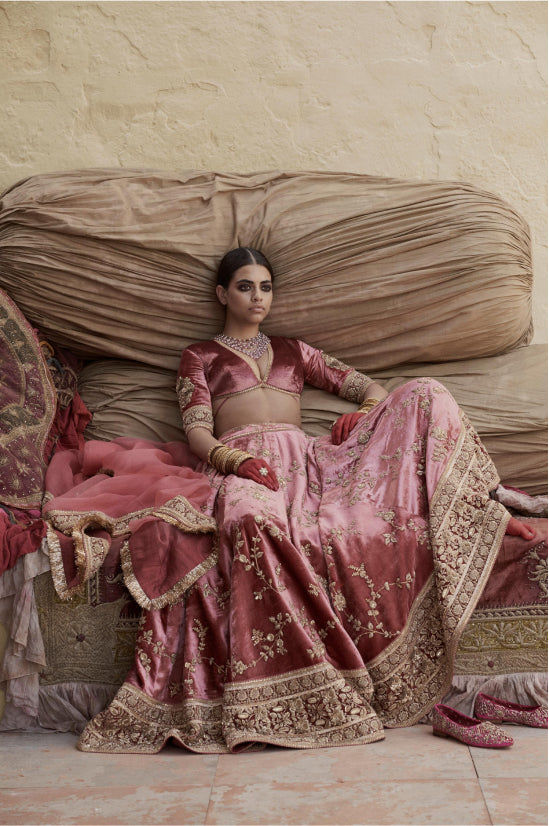 A celebration of classics. Matka silks, organzas, velvets and brocades, hand embroidered with zardozi, tilla work and gota tell a story of authenticity and the finest of Indian craftsmanship. Paired with heritage jewellery that brings back the grand artisanal legacy of India. This is our homage to tradition even as we celebrate the dynamism of today.
