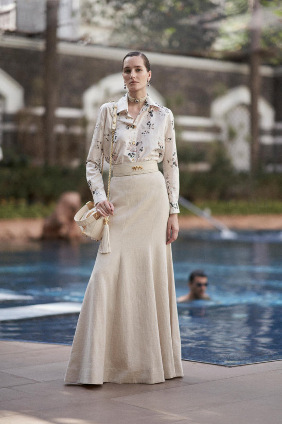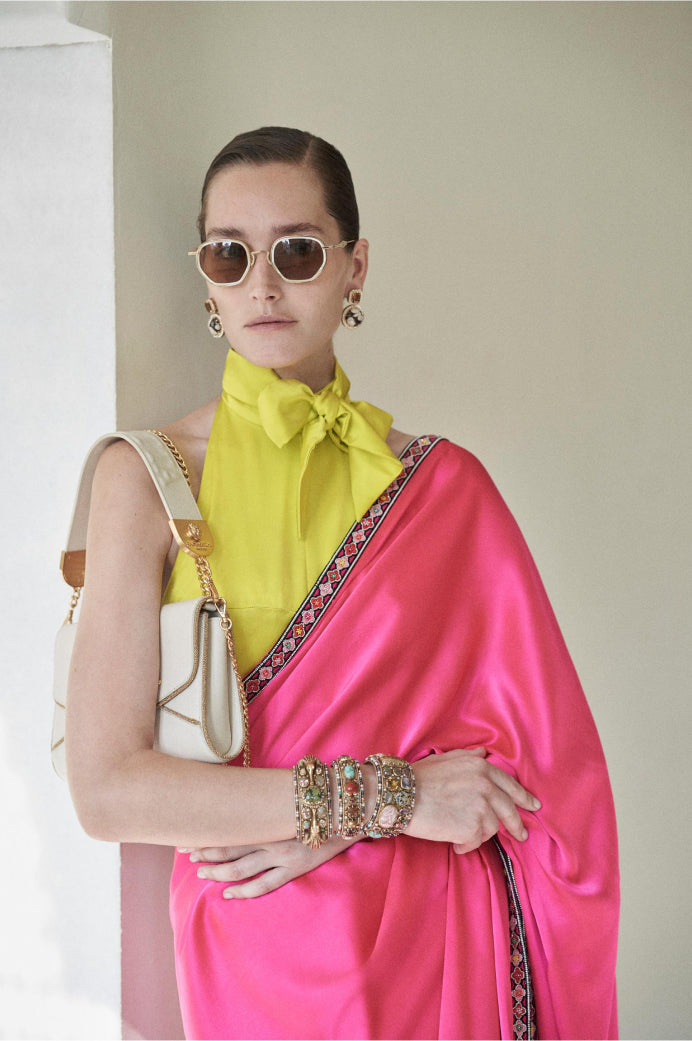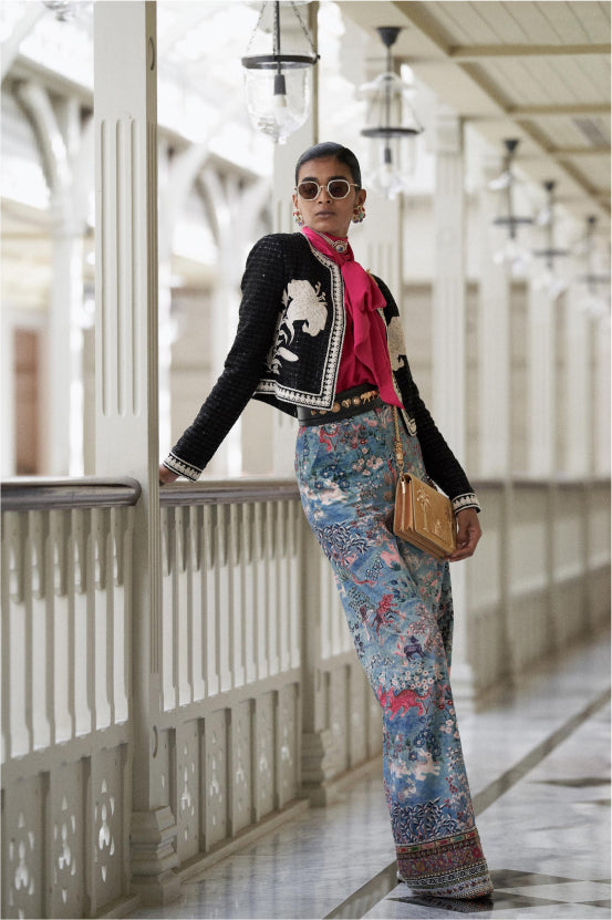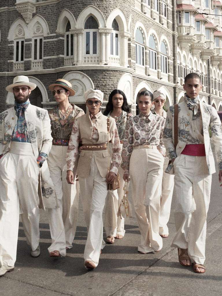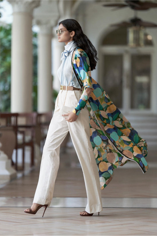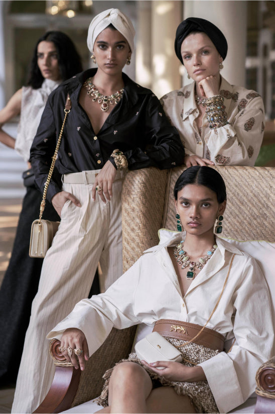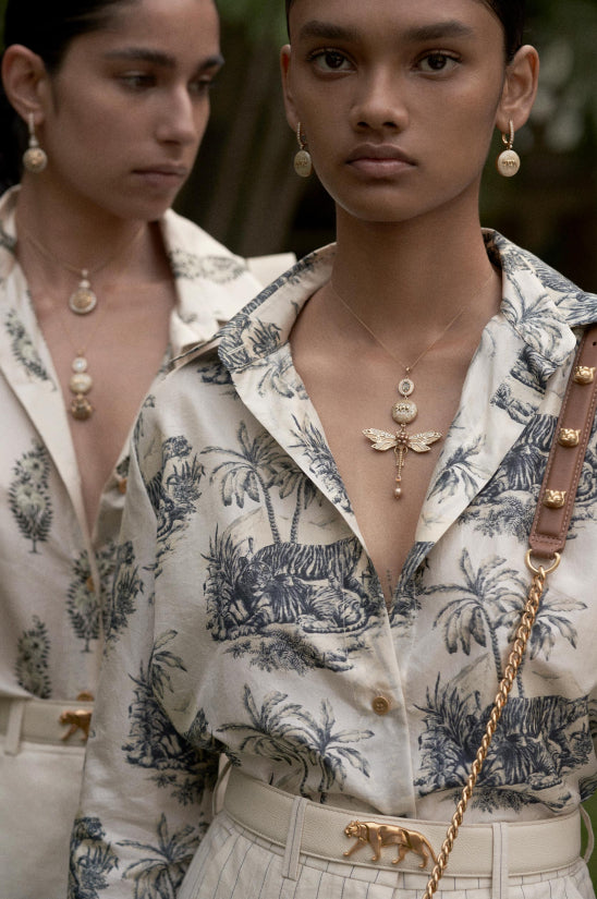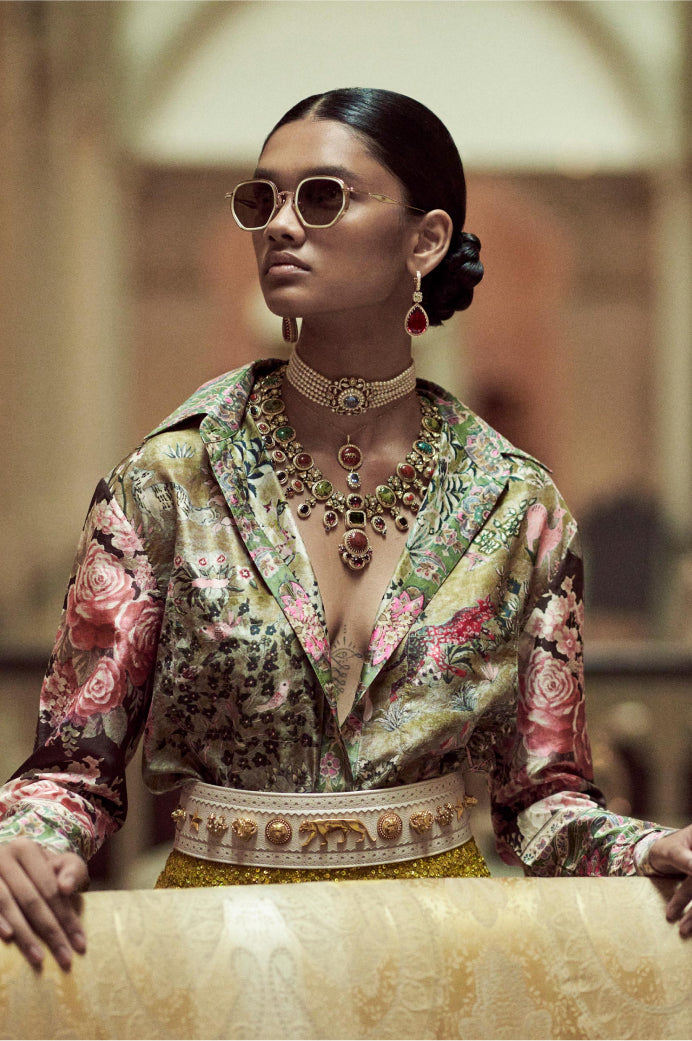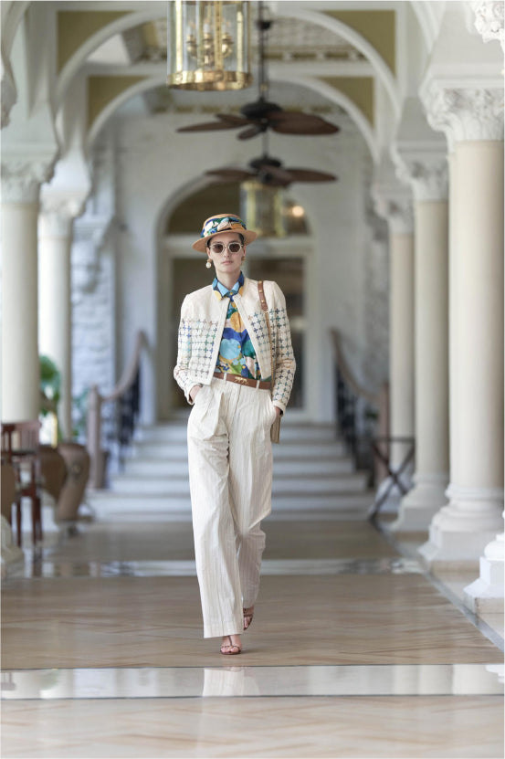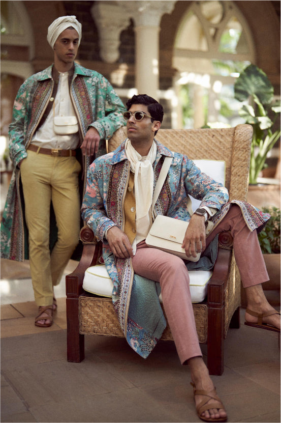 Precious and pragmatic, wearable yet heirloom—made for the modern wardrobe where lifestyle and travel meet luxury and wonderment. International Resort 2024 embraces art, craft and culture with the principles of soft tailoring and classic silhouettes. The finest of Indian silks, organic Japanese cottons, prints created by the Sabyasachi Art Foundation, an unusual mix of natural gemstones and rose cut diamonds, Italian hardware and fine leather—all come together to create Sabyasachi’s latest international collection of clothing, jewellery and accessories.