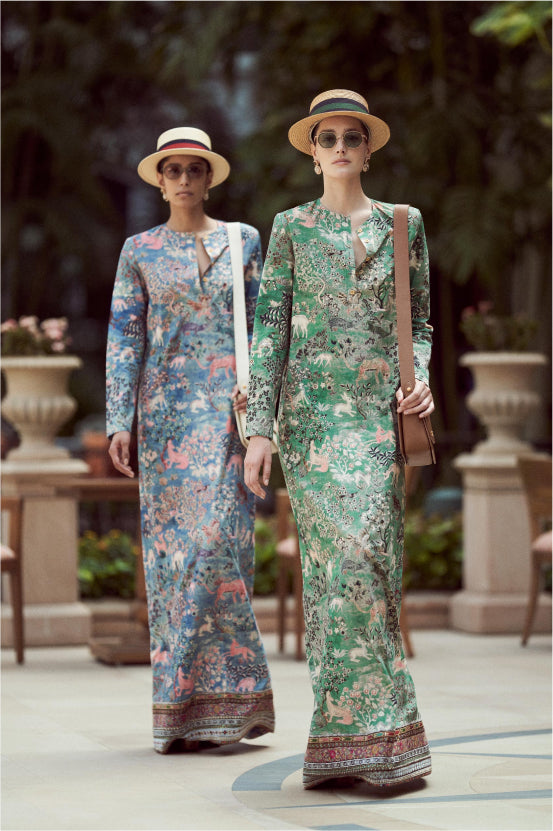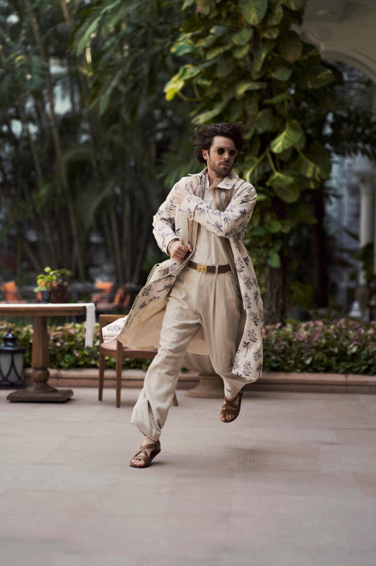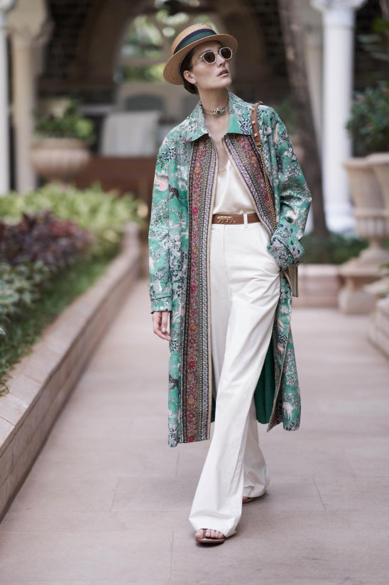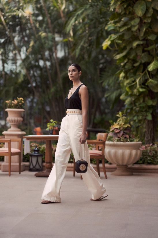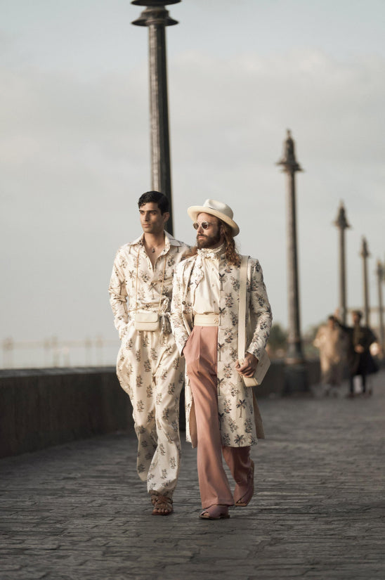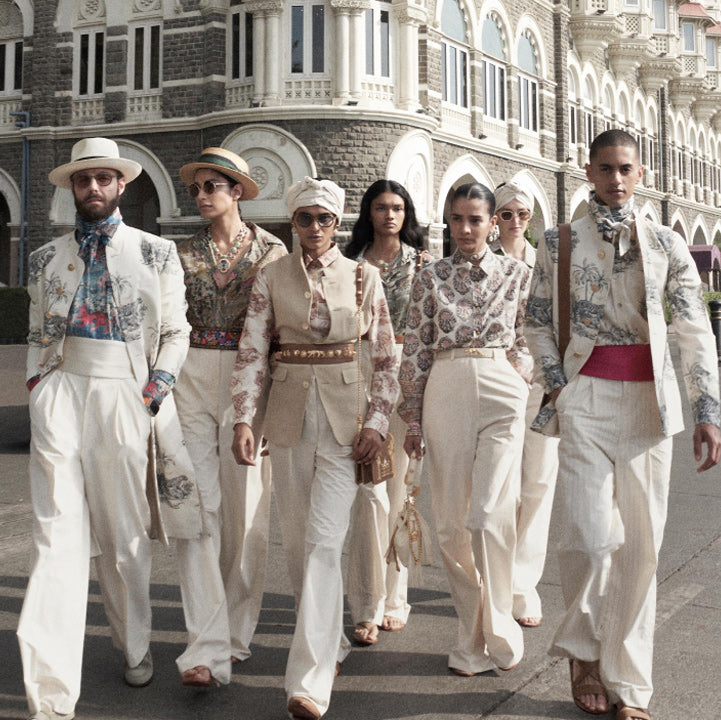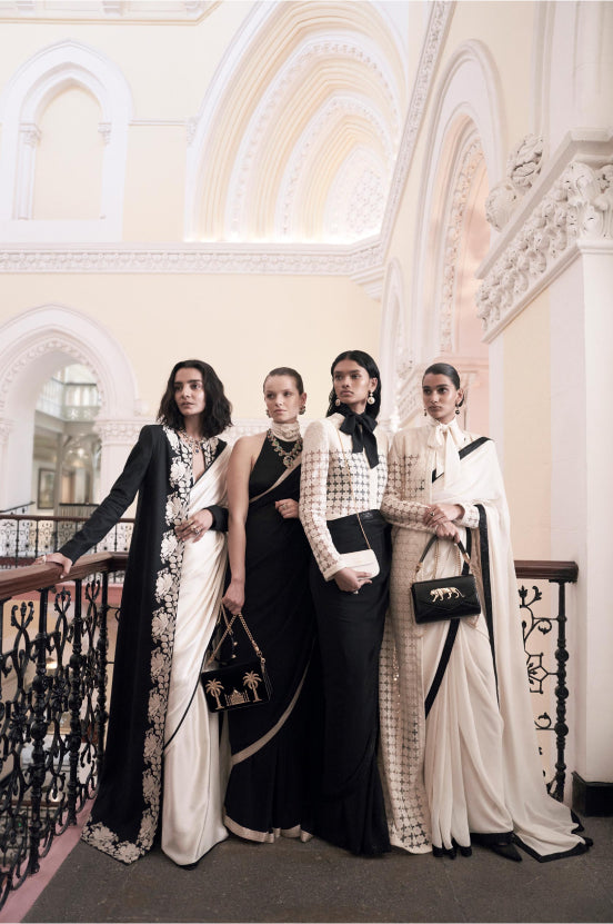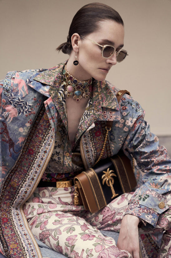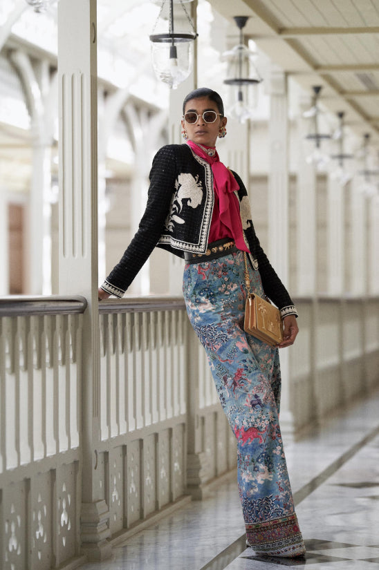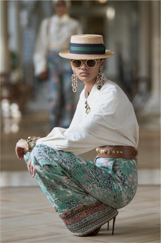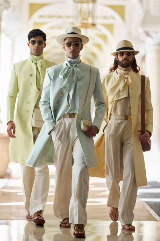 Precious and pragmatic, wearable yet heirloom—made for the modern wardrobe where lifestyle and travel meet luxury and wonderment. International Resort 2024 embraces art, craft and culture with the principles of soft tailoring and classic silhouettes. The finest of Indian silks, organic Japanese cottons, prints created by the Sabyasachi Art Foundation, an unusual mix of natural gemstones and rose cut diamonds, Italian hardware and fine leather—all come together to create Sabyasachi’s latest international collection of clothing, jewellery and accessories.