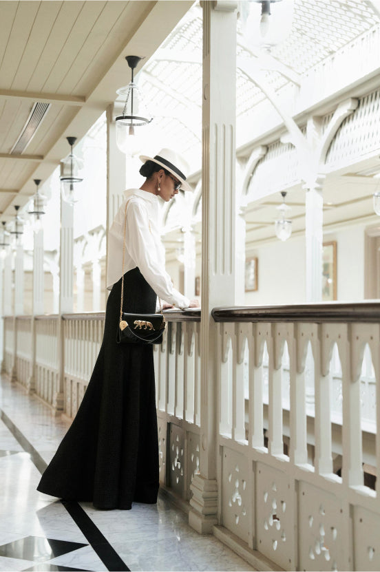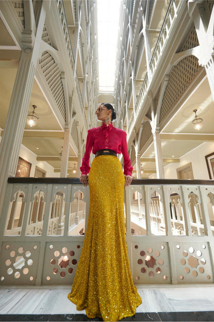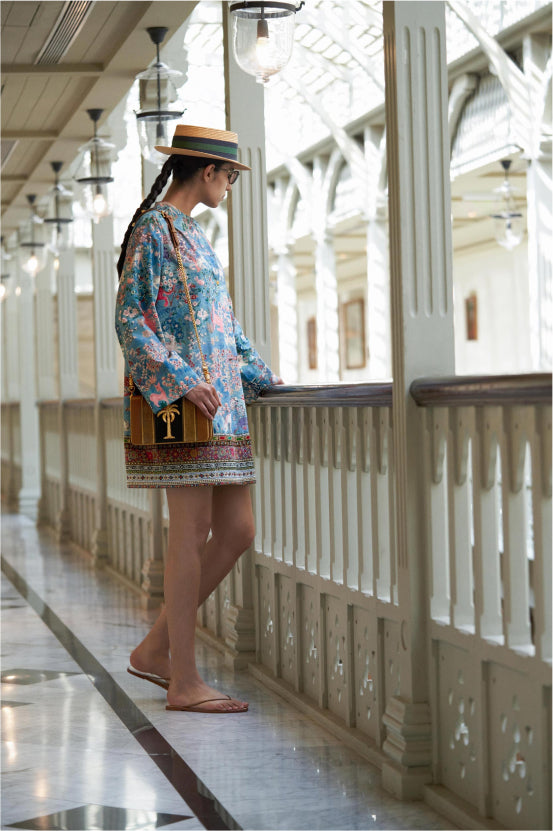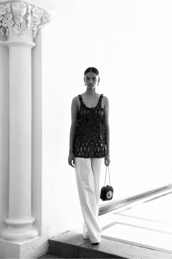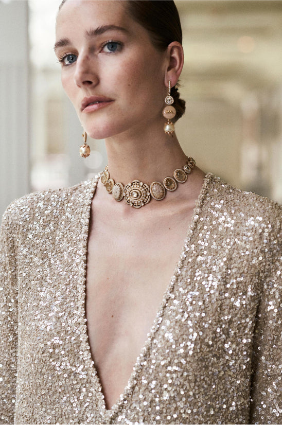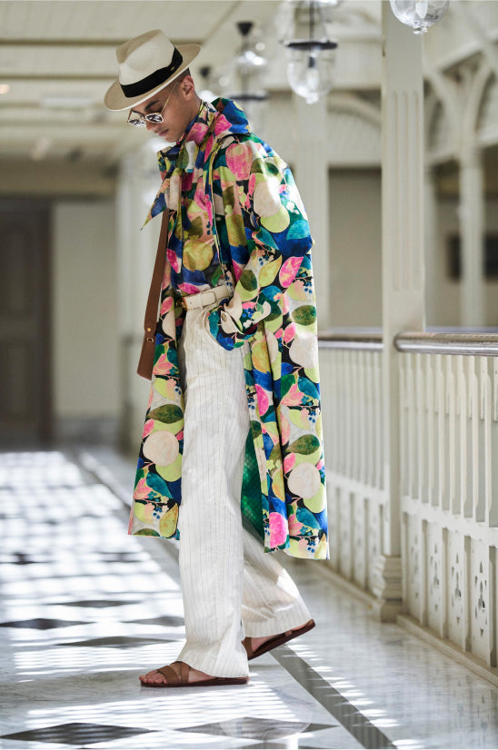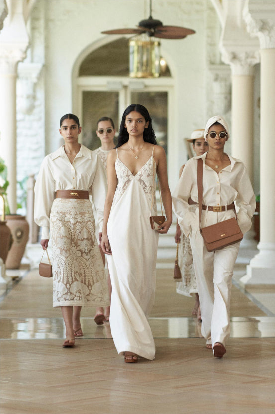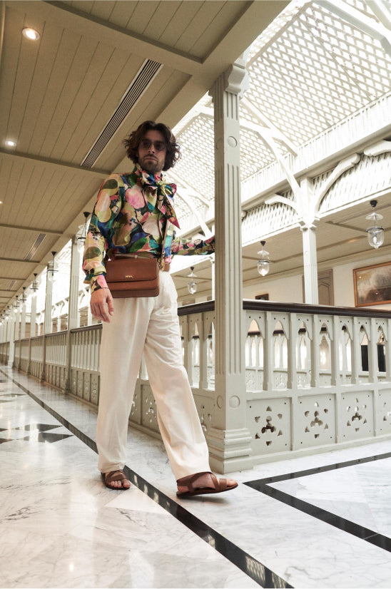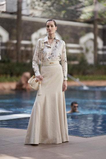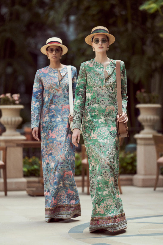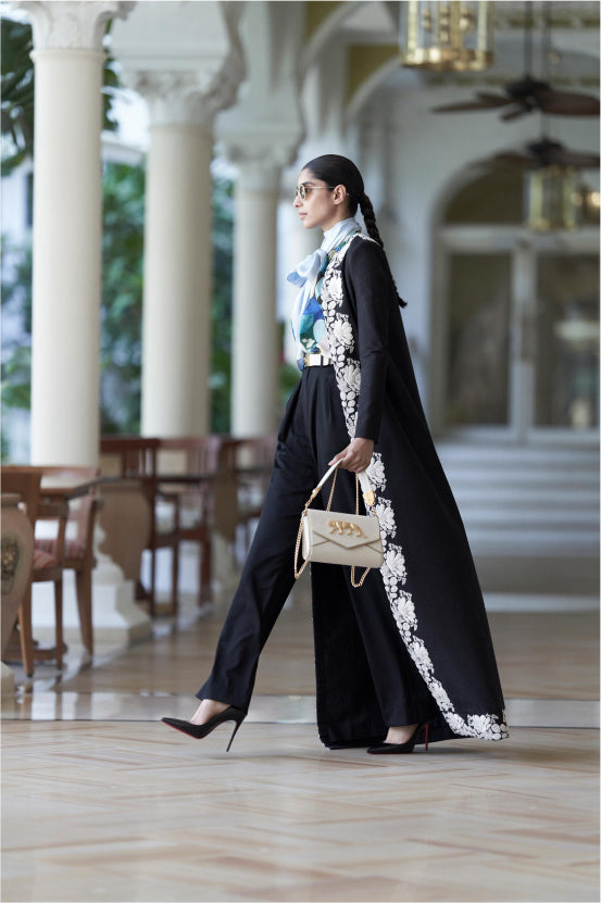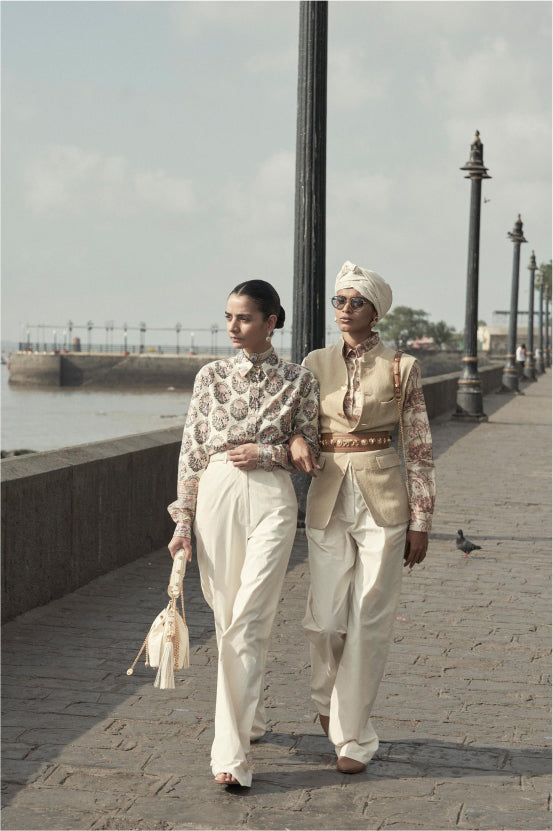 Precious and pragmatic, wearable yet heirloom—made for the modern wardrobe where lifestyle and travel meet luxury and wonderment. International Resort 2024 embraces art, craft and culture with the principles of soft tailoring and classic silhouettes. The finest of Indian silks, organic Japanese cottons, prints created by the Sabyasachi Art Foundation, an unusual mix of natural gemstones and rose cut diamonds, Italian hardware and fine leather—all come together to create Sabyasachi’s latest international collection of clothing, jewellery and accessories.