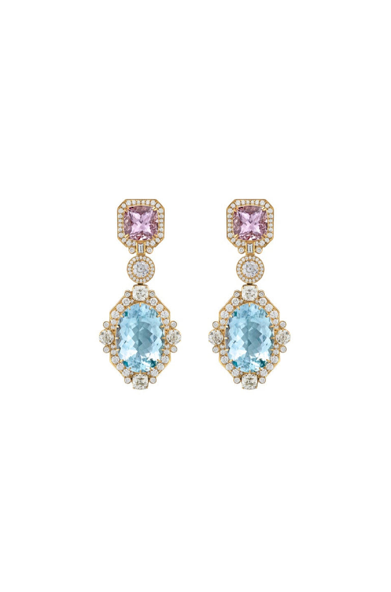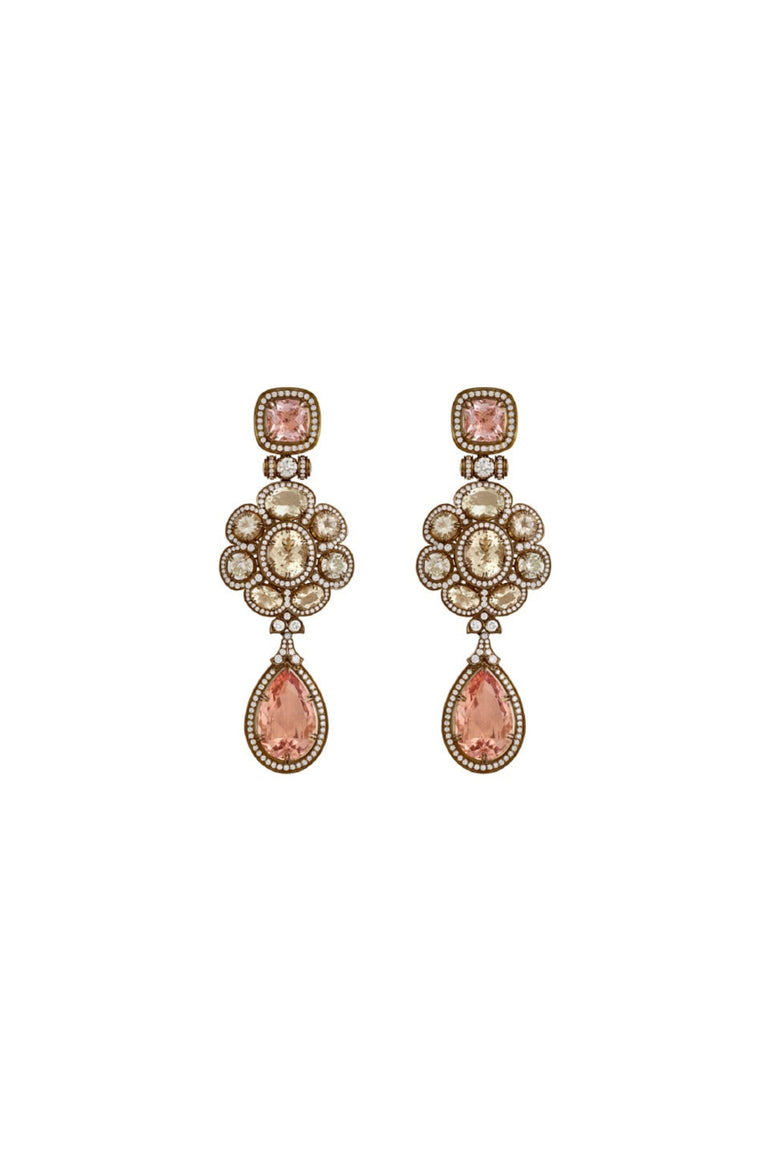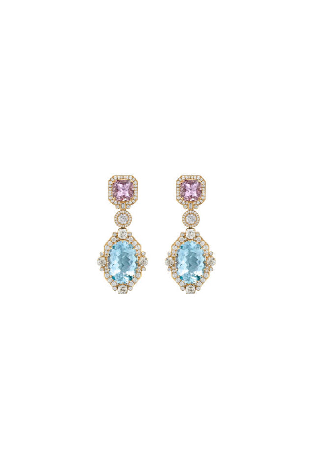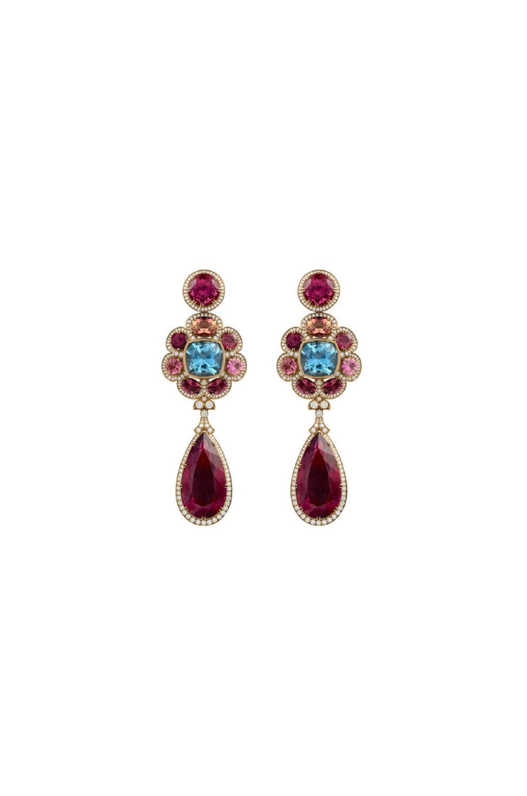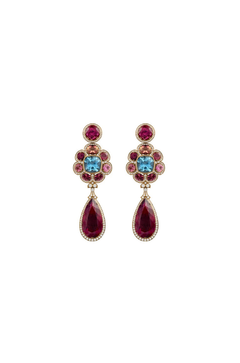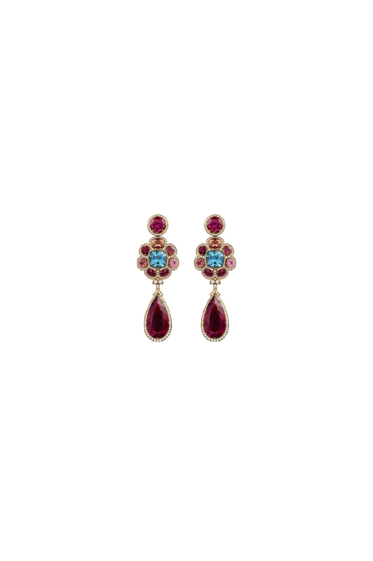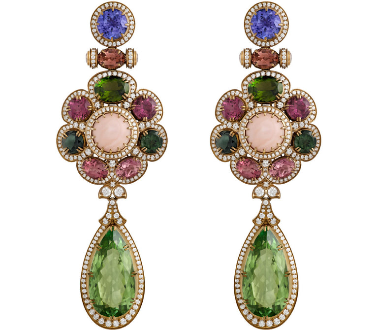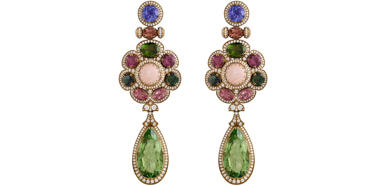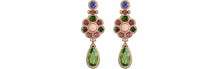 Earrings crafted in 18k gold with tourmaline, garnet, opal, tanzanite and brilliant cut