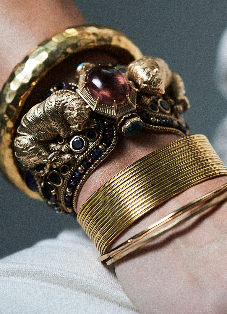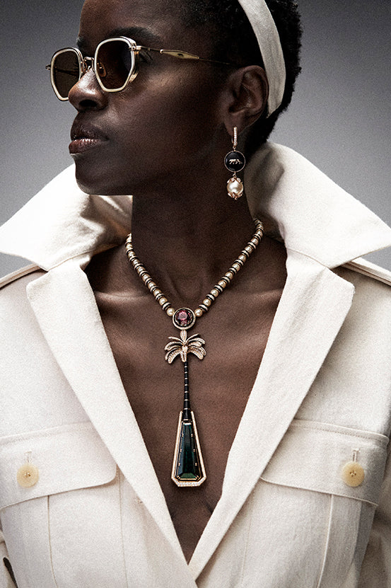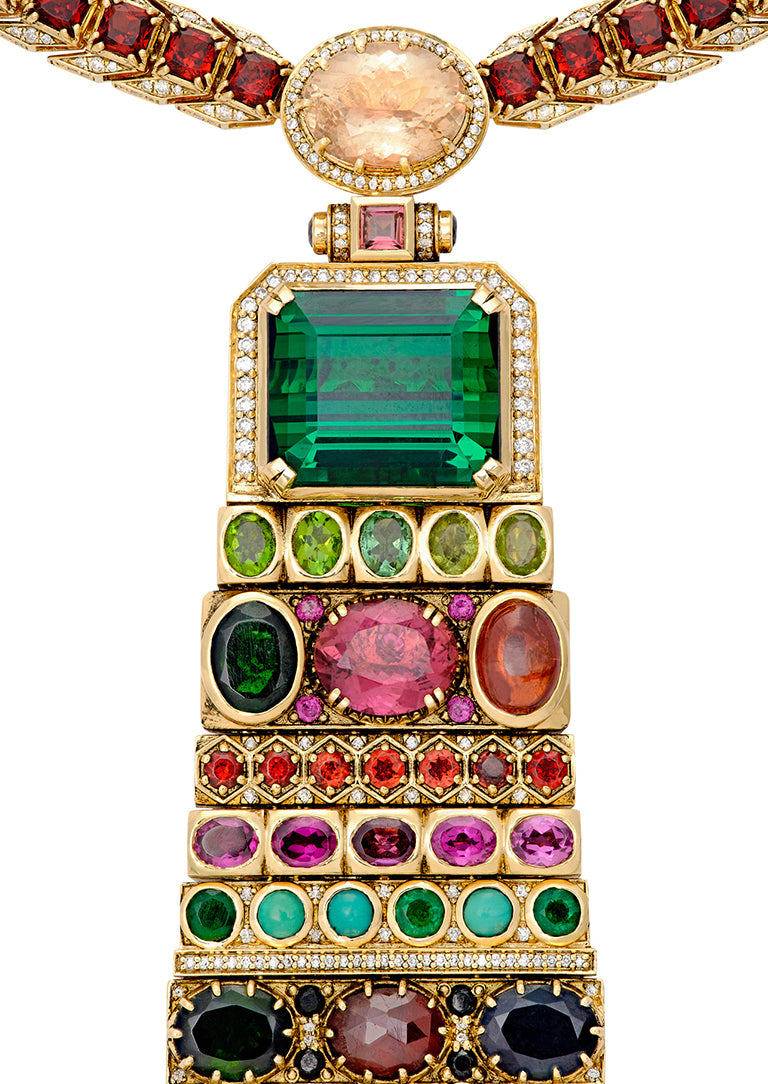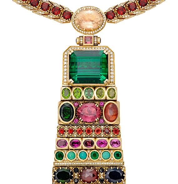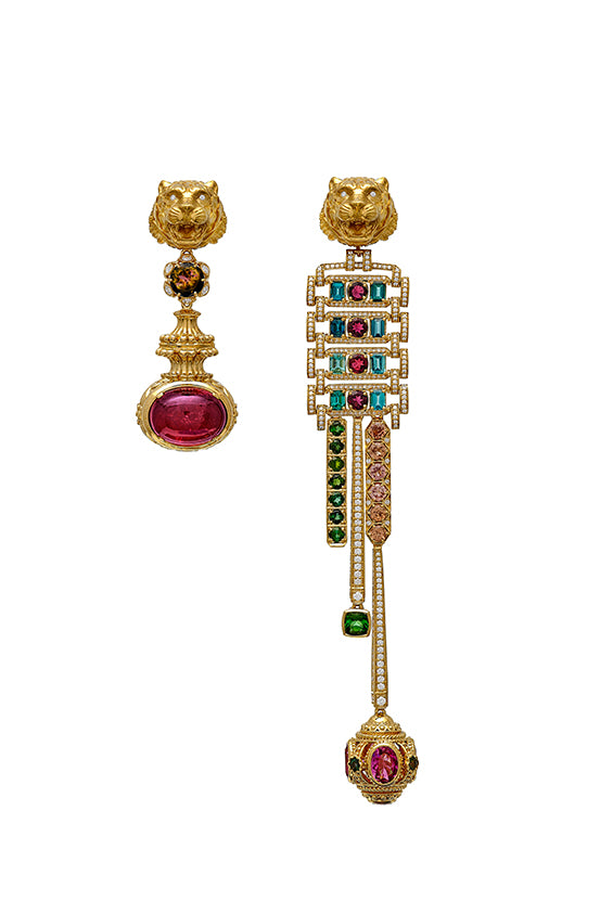 “I’ve been thinking about exoticism—India and the Moulin Rouge, French and Bengal savoir faire. Marrying the classic with the outrageous, from sombre evening pieces to head turning statement jewellery. Conjuring tigers, elephants, palms, berries and botanicals—crafted in spectacular gemstones. The precise geometry of watchmaking and the graphic strength of Byzantine mosaics, the symmetry of Mughal gardens challenged by the asymmetry of modern punk and confidence of Bengali craftsmanship. This is a kaleidoscopic collection with an unexpected whimsy.”