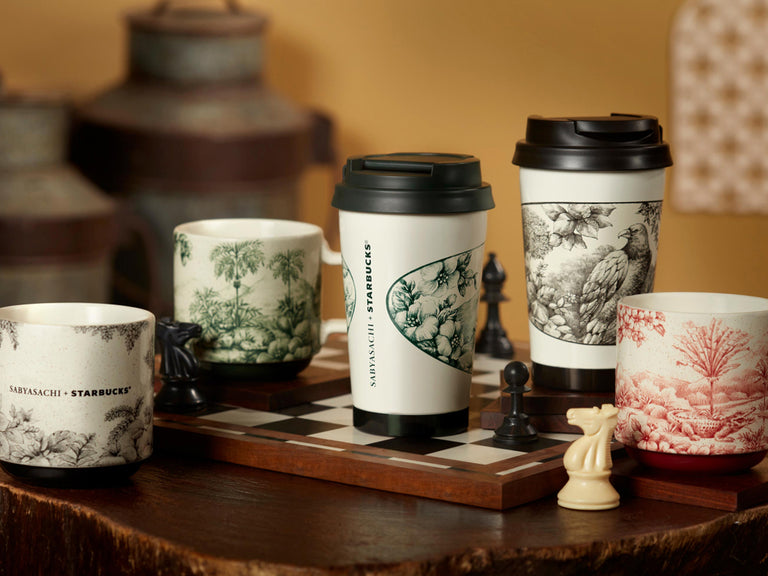 Sabyasachi collaborated with Starbucks on a limited edition collection of lifestyle drinkware that included ceramic mugs and stainless-steel tumblers. Proceeds from sales were donated to support ‘Educate Girls’—a non-profit organization with a focus on working towards improving girls and young women’s education across rural India, providing the support they need to develop their skills and find careers.