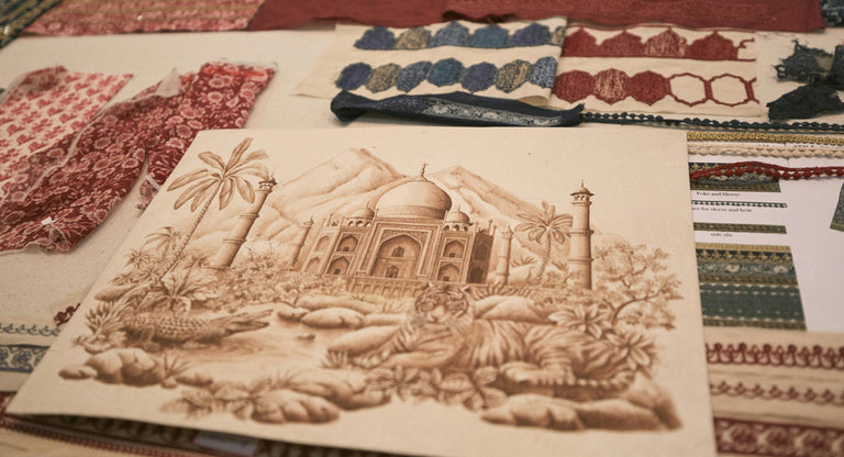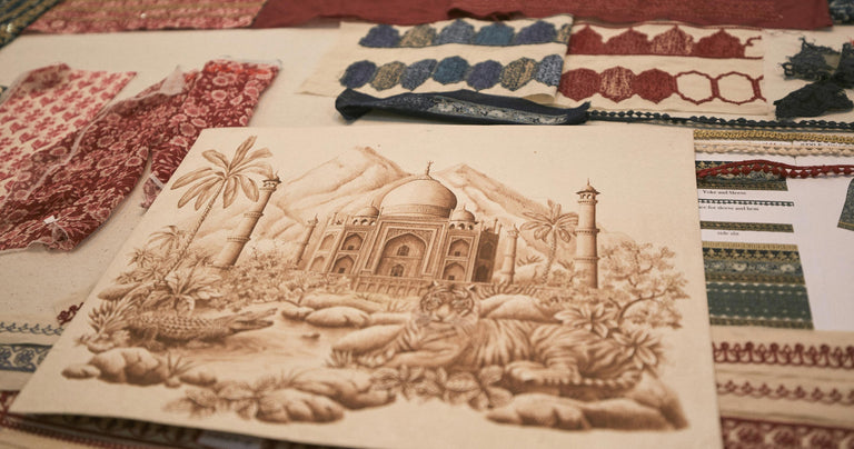 The collection features the foundation’s hallmark Toile De Jouy imagery that interprets scenes from the Sundarbans in Bengal.