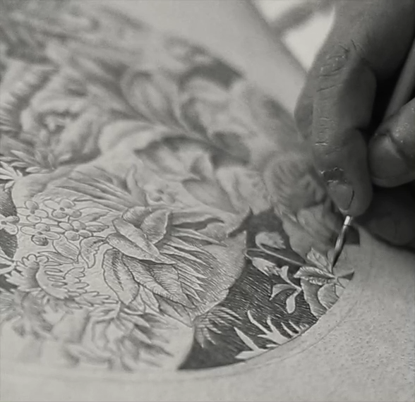 From restoring vintage art to creating modern renditions of Company Paintings, Qajars and Mughal Miniatures and creating original art works—their work can be seen across all Sabyasachi stores. Their art has also been platformed across Sabyasachi’s headlining global collaborations including Starbucks, H&M, Christian Louboutin, Pottery Barn, Asian Paints, Taj London and The Animal Ball by The Elephant Family. Their clay moulds of the flora and fauna from the Sundarbans are used as models for gold casting for Sabyasachi High Jewellery collections. And their hand painted artwork that are original interpretations from historic botanicals and portraiture, have gone on to become hallmark prints used across Sabyasachi clothing and accessories.