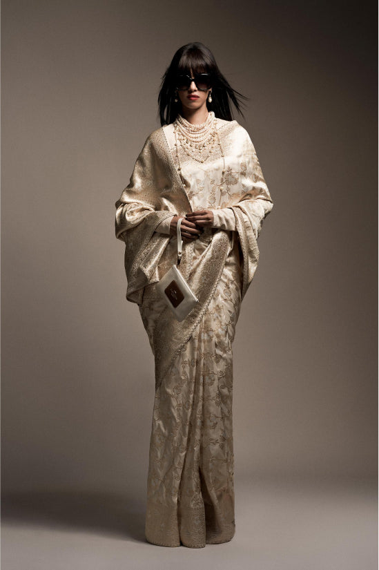 The finest of embroideries are made with a humble needle and thread. Deceptively simple but extremely difficult to master. It takes a master craftsperson over fifteen years to hone and perfect their skill. A sari embroidered with ektaar (single ply embroidery) takes an artisan upto three and a half years to complete. The real value of embroidery though, lies in the lightness and finesse of their hands. The more skilled the artisan, the finer the embroidery.